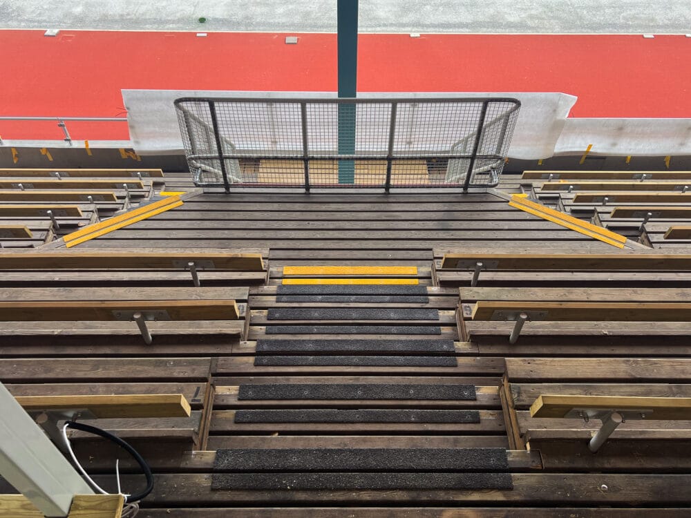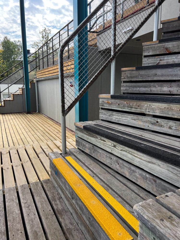 Det er Winge, gennem Stockholms stad og ejendomskontoret, der står for renoveringen. Det er Winge, sammen med andre partnere og leverandører, der sørger for at bringe Krillan tilbage til sin tidligere glans. Det er også Winge, gennem deres pladschef, der har fået installeret trappenæseliste MIMER og skridsikringsliste IDUN – trappenæser og skridsikringslister i glasfiber – i stedet for at følge den oprindelige plan med aluminiumslister yderst på trappetrinene. Der er ikke noget galt med aluminium, det er ikke det, vi mener. Det er bare sådan, at udendørs, under åben himmel med sne, regn, is og alt hvad det indebærer, er aluminium ikke den bedste løsning.