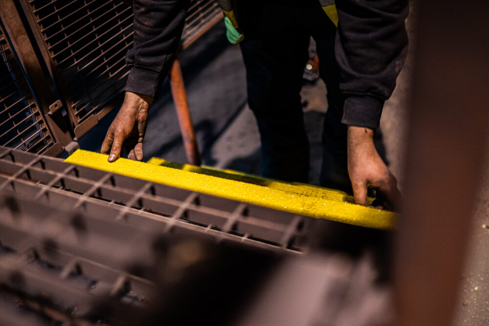 På anlægget i Luleå har man også indset fordelene ved vores glasfiberprodukter. Her har man investeret i skridsikring og kontrastmarkering og monteret både trappenæser, trappetrin og stigetrin for yderligere at øge sikkerheden i anlæggets industrilokaler.