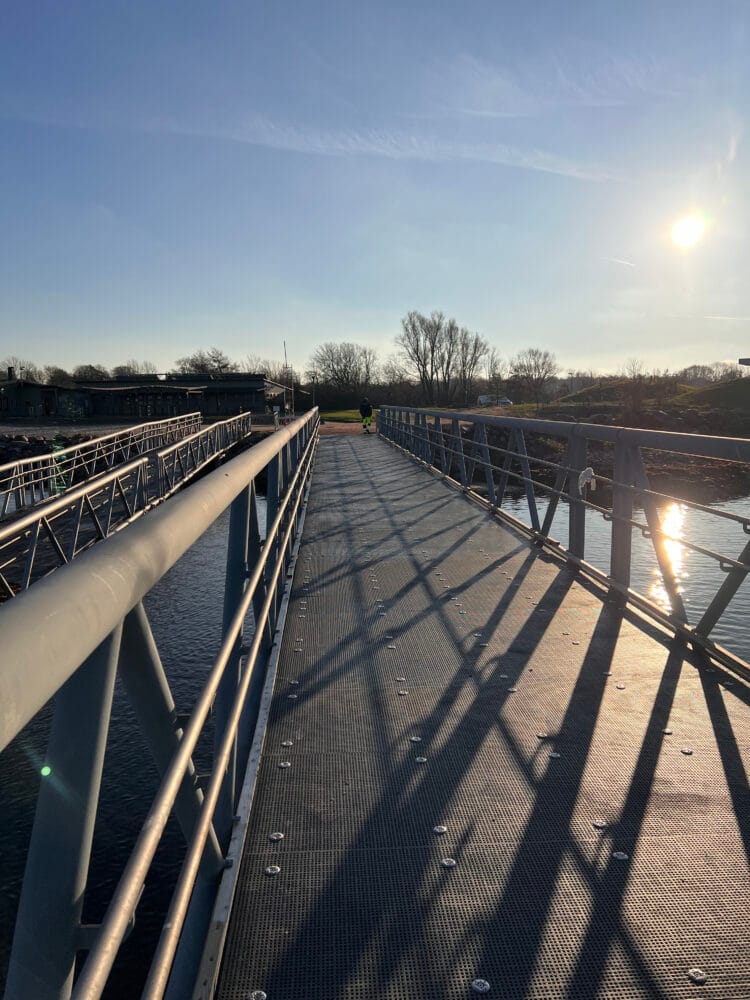 Idéen om en tilgængelig bro blev realiseret, men en stor udfordring stod tilbage: At finde et materiale, der kan tåle daglig kontakt med vand år efter år, uden at gå på kompromis med sikkerhed og holdbarhed.