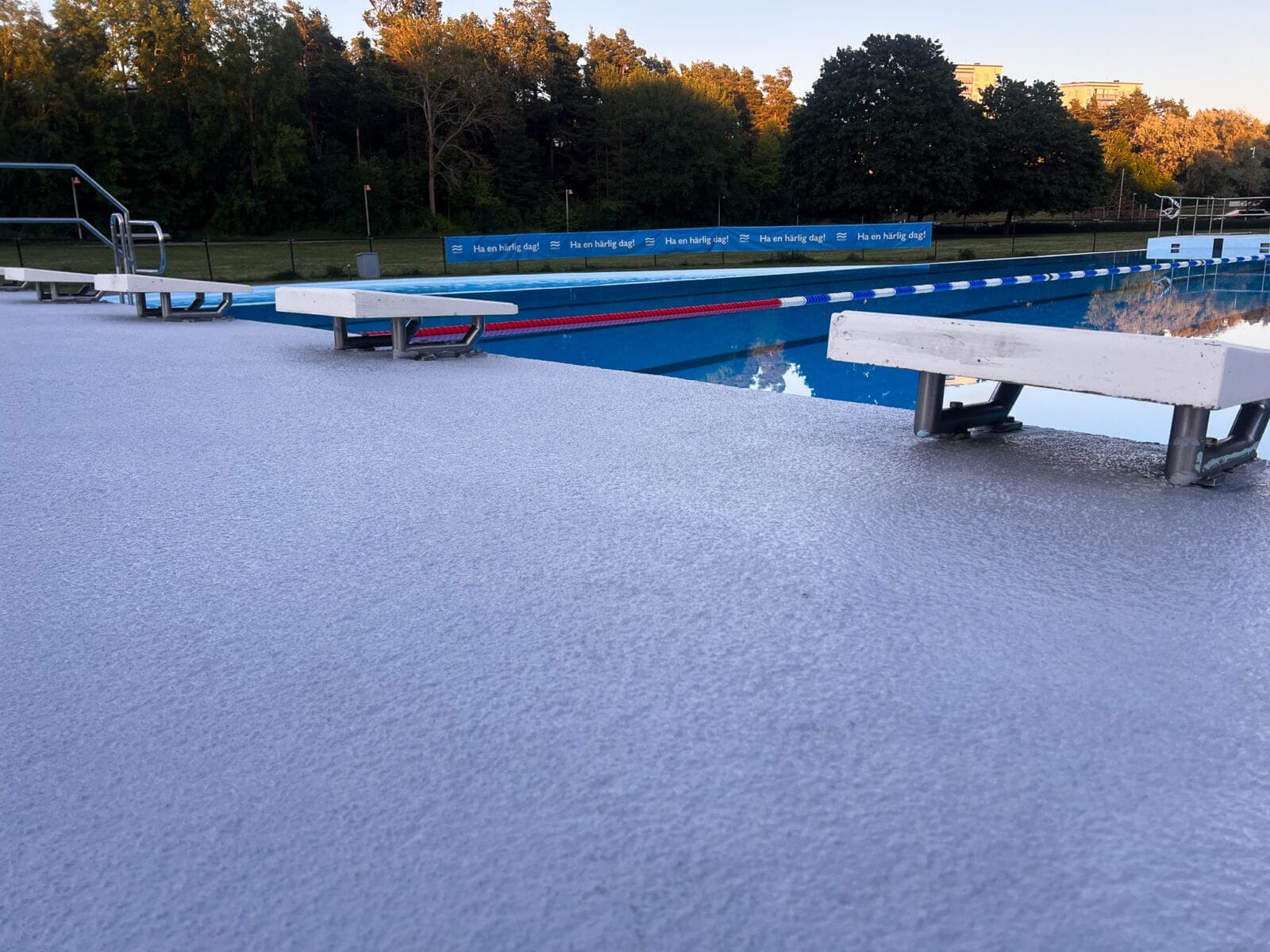 Redab tøvede ikke et sekund, og en uge senere var poolområdet behandlet med en løsning, der vil holde betydeligt længere end tre år. “Gå forsigtigt i poolområdet” sagde ingen nogensinde igen.