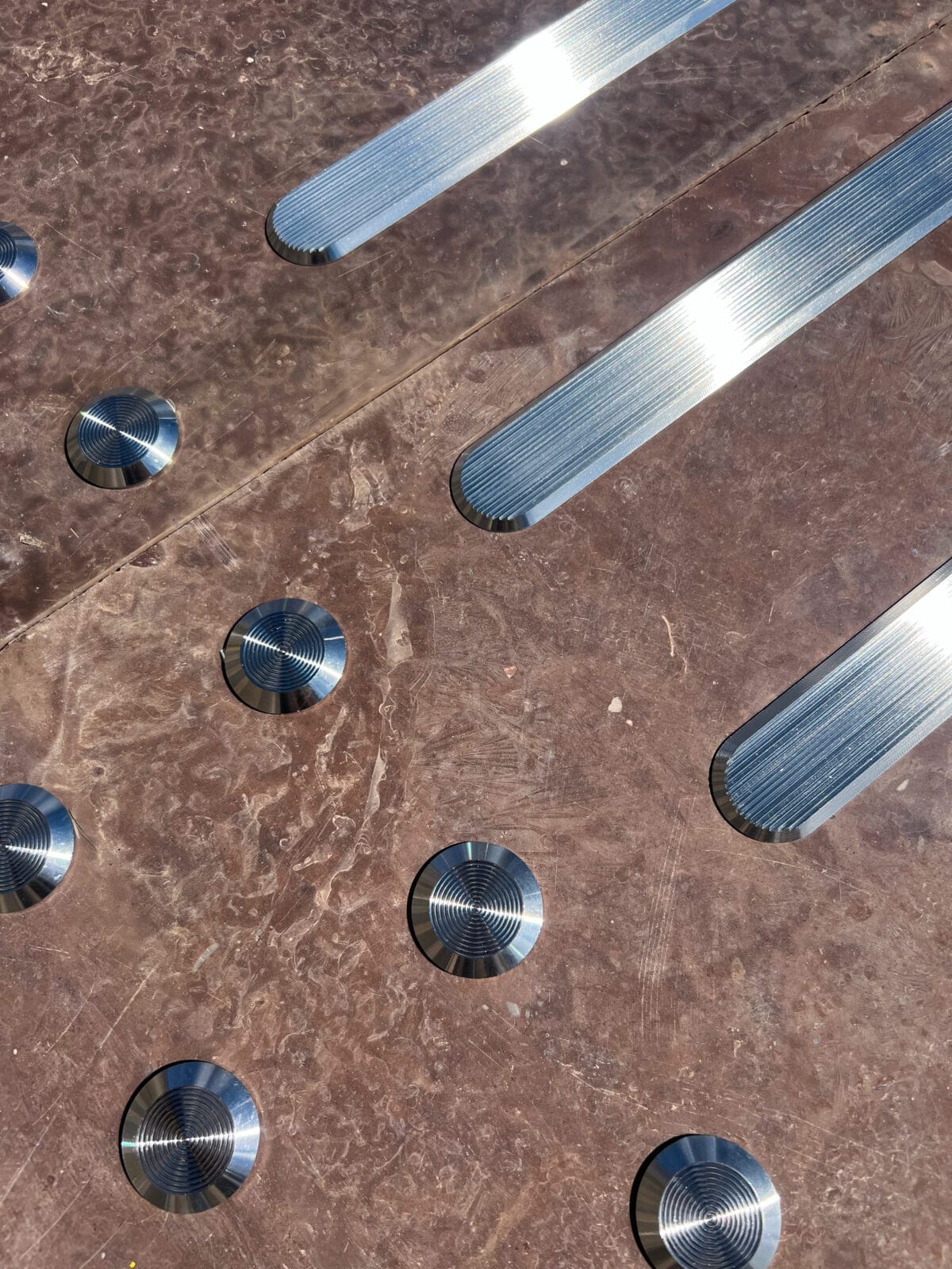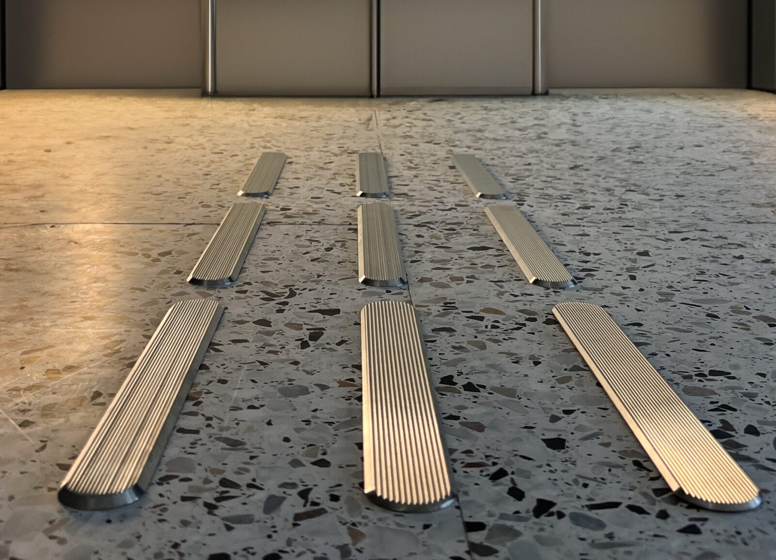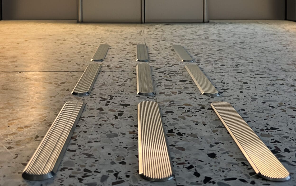 Taktile stier i rustfrit stål.