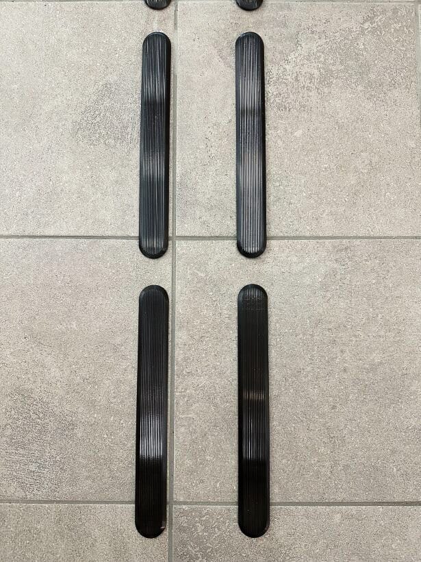 SVARTBÄCKEN har en smuk mørk farve med en blank finish. Både ledestænger, stopmarkeringer og kontrastmarkeringer fås i tre forskellige designs og kan monteres med 3M-tape, stifter eller monteringslim.